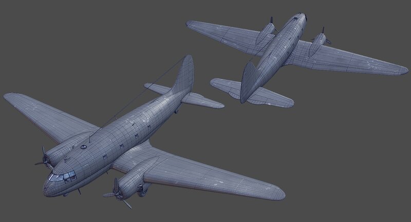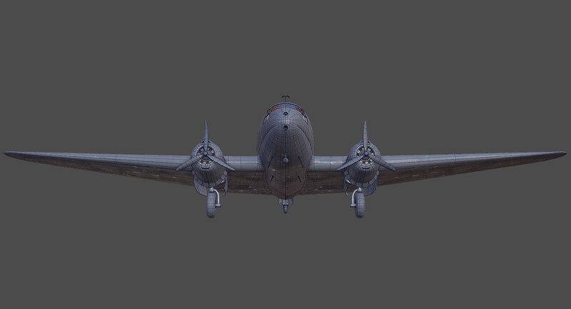 Textured 3D model of American aircraft Curtiss C-46 Commando.