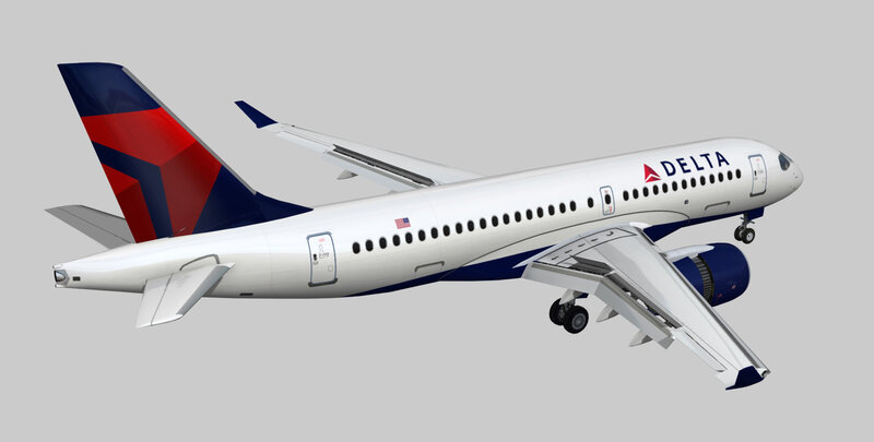 Airbus 220 Bombardier C Series 100 CS100 Delta airlines livery Low-poly 3D model