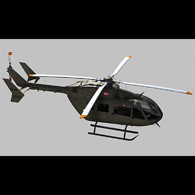 It's a detailed UH-72 model, exterior features including antena, lights, skids and windshield wiper, seperated rotor system. Interior includes cabin with seats, cockpit instrumentation and flight controls. All doors are cut and animated in 3ds Max file.