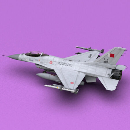 A detailed model of F-16C Block 40 for Royal Bahraini Air Force, fully detailed nozzle, air brakes, cockpit, gear bay and landing gear.