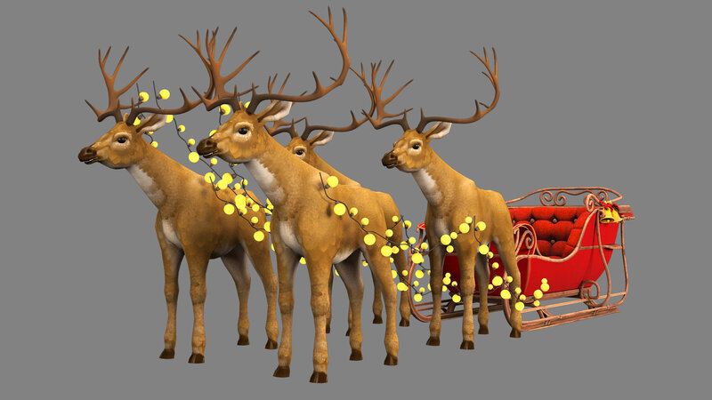 Santa deer and red sleigh