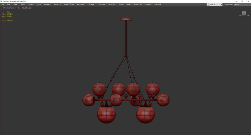 Name: Arteriors_Troon_Round_Chandelier Version: 2013 Units: Millimeters Dimension: 911.14 x 911.14 x 1109.61 Polys: 62 867 turbosmoth 1 iteration _ 394 048 Model Parts:1 Render: V-Ray Formats: 3Ds Max 2013, OBJ