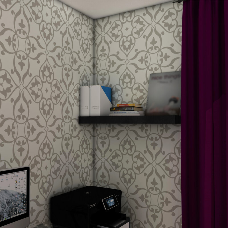 walls , floor , room , curtains , computer , office , furniture , accessories , books , paper , shelf , cabinet , table , chair , multifunction , printer and more.