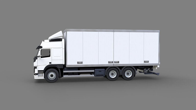 PBR low-poly 3D model of Medium Size Box Truck. The interior part is also modeled and textured but with much less detail.