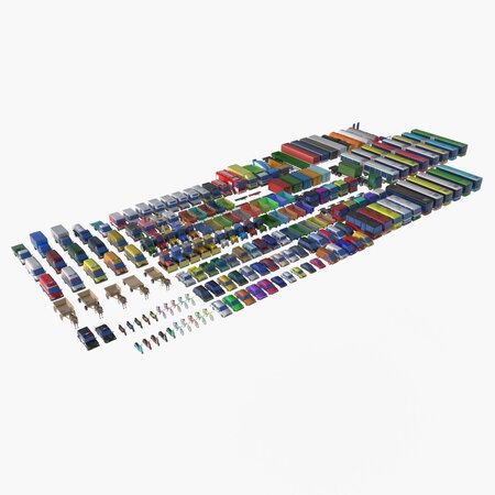 The set also includes a scene with vehicles arranged. There is a texture - jpeg palette. Each model consists on average from 2000 to 5000 polygons. The entire set was made in Cinema 4D 2023, converted to 3DS Max, Blender, Unity, Unreal engine 5.3, and many other formats. The set will be replenished and improved over time, and you can also ask to add something of your own to the pack (by writing to me).