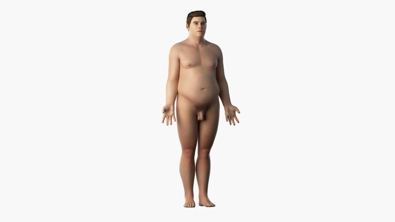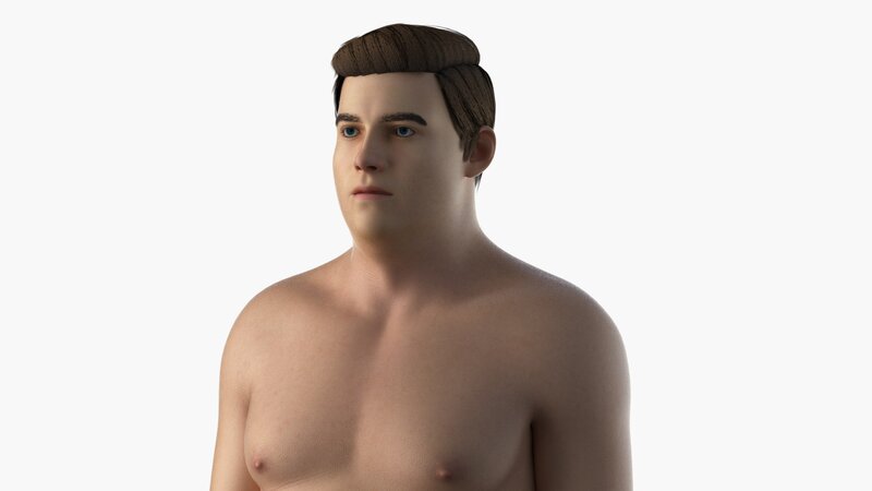 Obese Male Skin, Skeleton And Vascular System Rigged