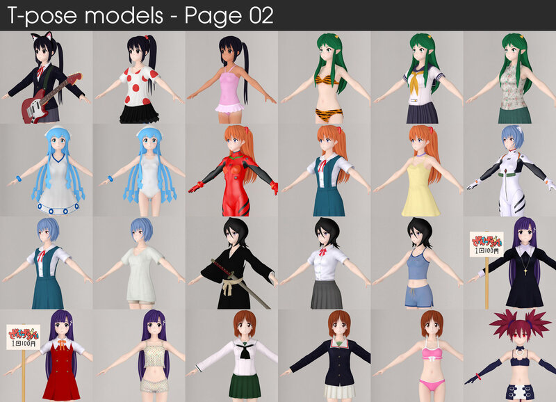 All of my anime girls (include T-pose rigged/nonrigged models and posed models). These models based on famous characters from various Japanese anime series. Models are turbosmoothed to give a high quality render.
