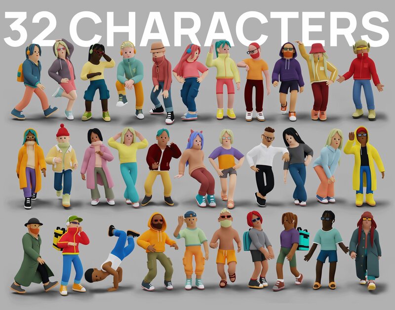 !Blender required! Introducing a collection of stylized 3D characters that will bring your projects to life! These models have been expertly crafted with attention to detail and a unique flair, making them perfect for a range of creative endeavors.
