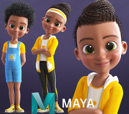 Cartoon Afro Girl - Toon Rigged Child - Maya Version