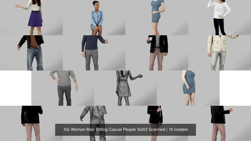 10x Woman Man Sitting Casual People Vol03 Scanned 3D Model Collection