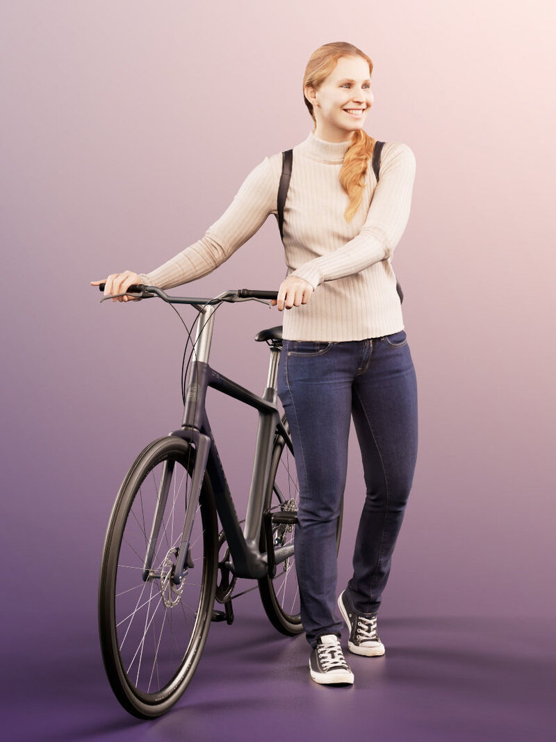 Summer 11668 - Casual Woman Pushing Her Bike With Bag 3D model