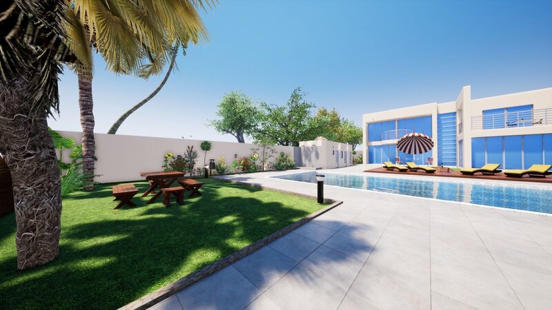 Modern Twin Villas with Swimming Pool 3d scene 3D model