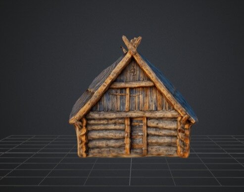 A detailed 3D model of a rustic wooden cabin with a weathered, log construction and a textured roof. This model is perfect for use in medieval, fantasy, or rural-themed environments in games, animations, or virtual reality projects. The cabin's authentic design adds a touch of realism and charm, making it an excellent choice for creating immersive and historically inspired scenes.