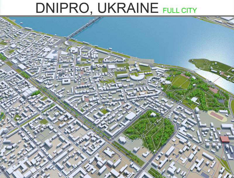 Dnipro City in Ukraine 60km Low-poly 3D model