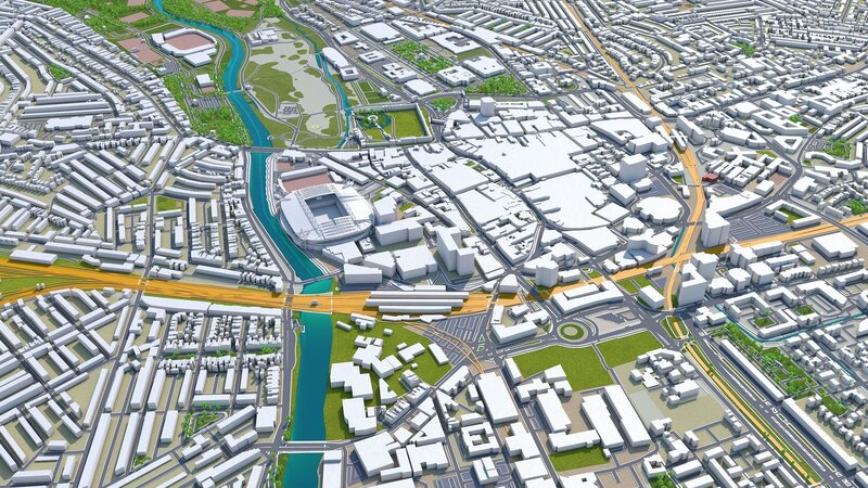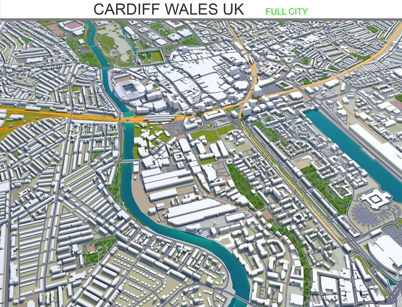 Cardiff Wales United Kingdom 30km Low-poly 3D model
