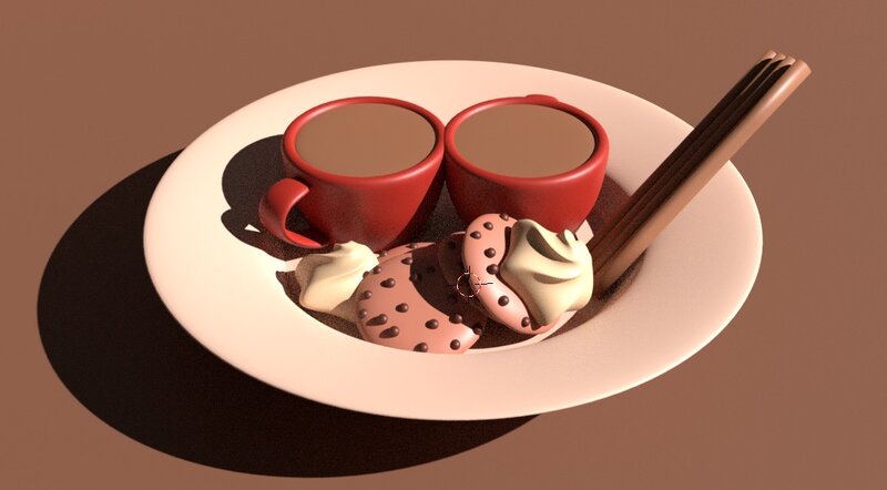Enjoy this lovely cute 3D 2 cup of coffee and cookies model...