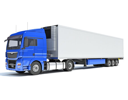 Highly detailed 3d model of truck with reefer refrigerator trailer.