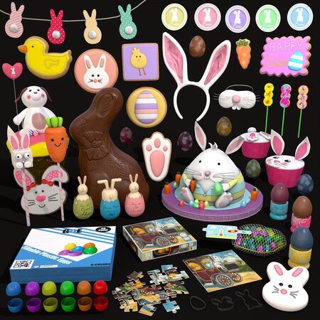 Big Easter Prop Pack 3D Model PBR Texture available in 4096 x 4096 Maps include : Basecolor, Normal, Roughness, Height, and Metallic. All Preview renders were done Marmoset Toolbag 4 Scaled to real world scale. Customer Service Guaranteed. From the Creators at Get Dead Entertainment. Please like and Rate! Follow us on FaceBook and Instagram to keep updated on all our newest models.