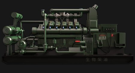 The Chinese text on the skid translates to "Bio-Diesel Generator". If this feature is unwanted or unneeded, the file also comes with additional clean versions of the skid texture featuring no text.