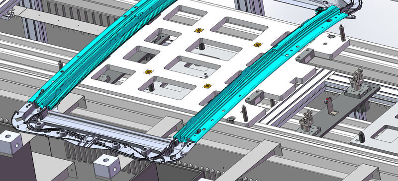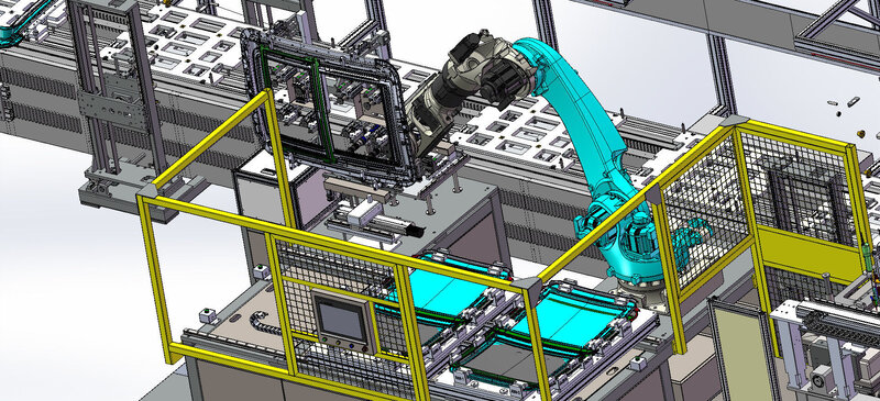 This is industrial 3D model car sunroof production line. The sunroof production line equipment is placed on a double speed chain line for circulation, for stations requiring high precision (engine lock, glass lock) are positioned and assembled independently outside In line, the stations to be adjusted are equipped with precision adjustment mechanism and LVDT. Real-time adjustment ensures that more than 90% of offline products qualify for the first time offline surface difference. .If they are unqualified, they can be repaired manually at the local station to avoid the problem of high product offline failure rate. Kawasaki six-axis robot is used.