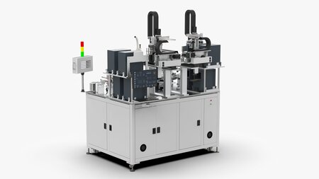 Mobile phone motherboard testing equipment, adopts the method of vacuum adsorption by manipulator, two groups of 6-station turntable test modules on the left and right, plug-in test, straightness test, pressure test, two groups of XYZ plus vacuum adsorption modules grab to In the testing machine, testing such as withstand voltage and power on .