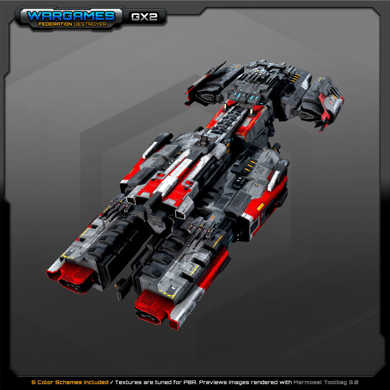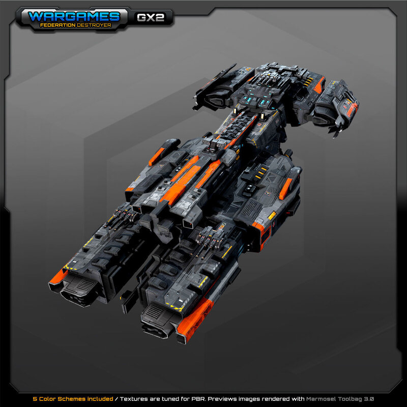 Set of one Spaceship. No animated parts, script or LOD. This model include Modular parts, you can move / rotate / duplicate parts (All Federation spaceships modular parts are compatible between each other) You can combine those elements to change the appearance of those ships. Included Weapons, see previews.