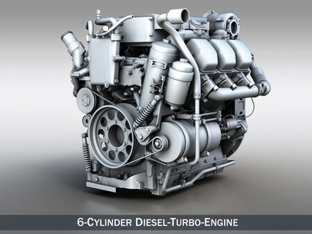 Truck diesel engine with 6 cylinders in Vee-type configuration