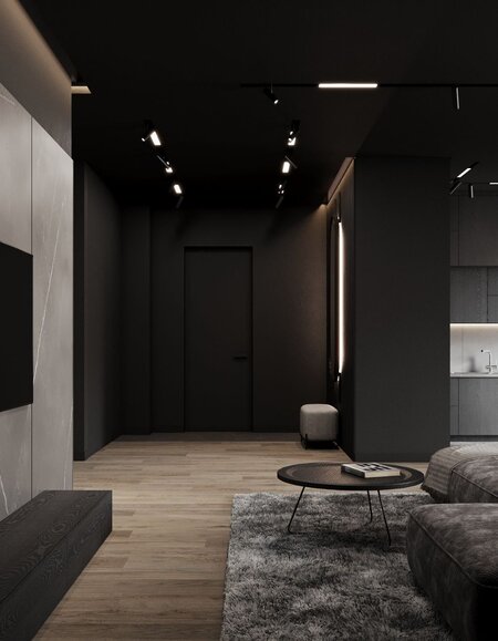 Livingroom and kitchen Interior design style minimalism 3d max 2020 corona render 7 this room is a studio, where the living room and kitchen are located in one place