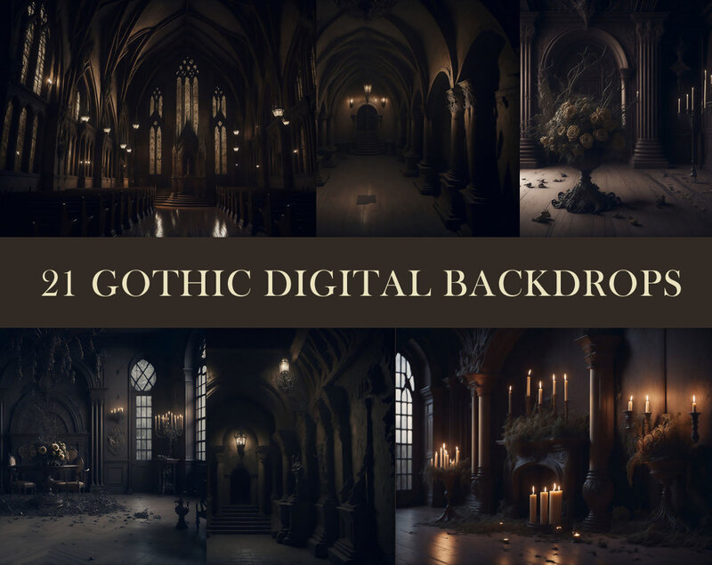 Collection of 20 4k resolution gothic horror themed digital backdrop images, suitable for over-rendering, photo compositing, splash screens or other digital editing. This is not a collection of 3D scenes.