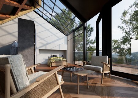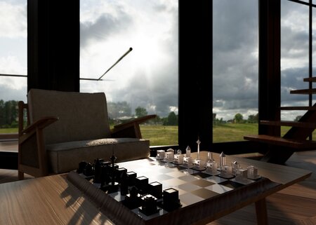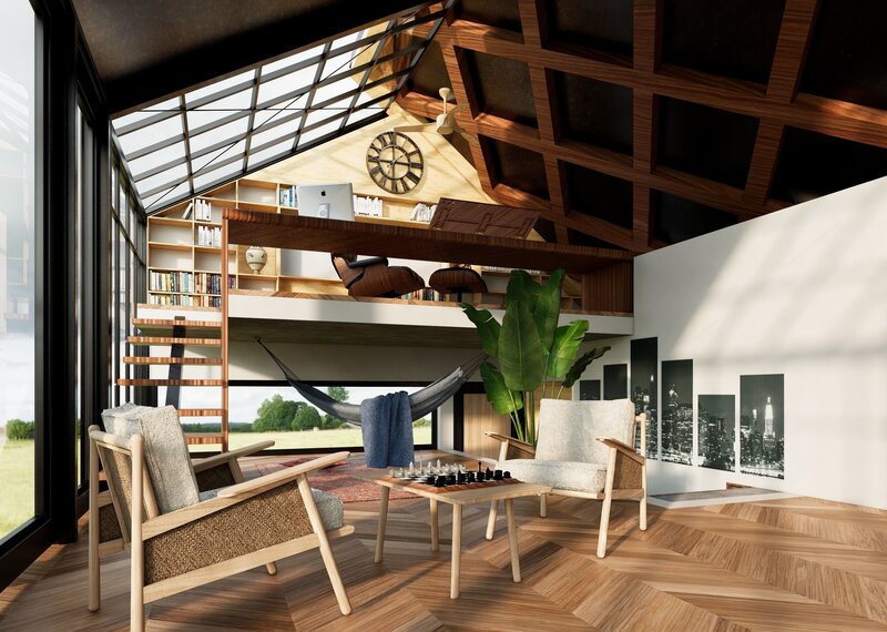 Accurate modeling with quality objects and materials in Sketchup and realistic renderings with Inscape rendering engine, entrance space, sleeping, working, resting, and bathroom and toilet