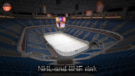 NHL and IIHF ice hockey arenas in real-world size with 18320 seats, top ads, oval ads, a large scoreboard, two levels of VIP rooms and seats, tables, detailed roof construction, and many more... NHL rink and IIHF rink are created in real units of measurement modeled on real ice rinks for NHL and IIHF.