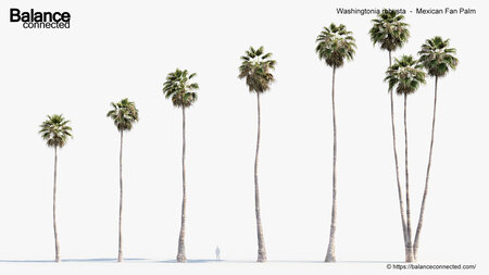 This product Washingtonia robusta – Mexican Fan Palm includes 6 unique 3D model variations with different heights, ages and forms of the species available for your production needs. We are sure our “ready to import and render” products will help you with production efficiencies and effectively.