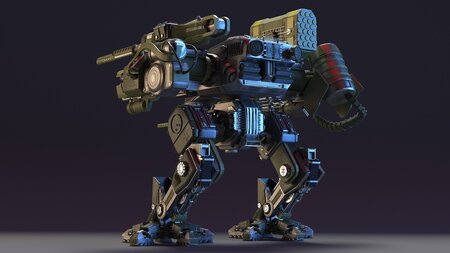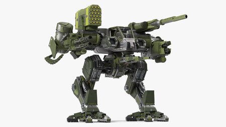 It is designed for ground combat and is capable of walking or maneuvering on legs, allowing it to traverse rough terrain and engage in direct combat with enemy forces. These machines are often used in futuristic or science fiction settings and are a formidable force on the battlefield.