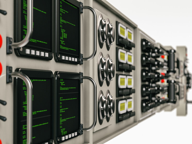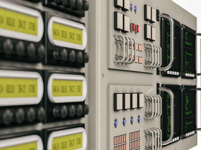 Panels with buttons and levers and such.